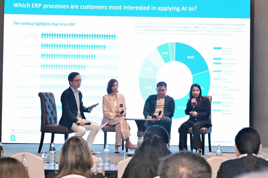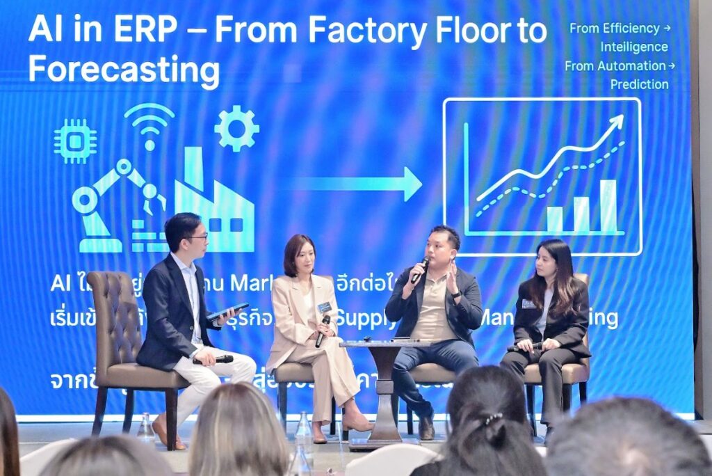 เมื่อถามว่า เทรนด์ของ AI กับ ERP ในอนาคตจะเป็นอย่างไร วิทยากรทั้ง 3 ท่าน ตอบตรงกันว่า AI เข้ามามีบทบาทสำคัญแน่นอน