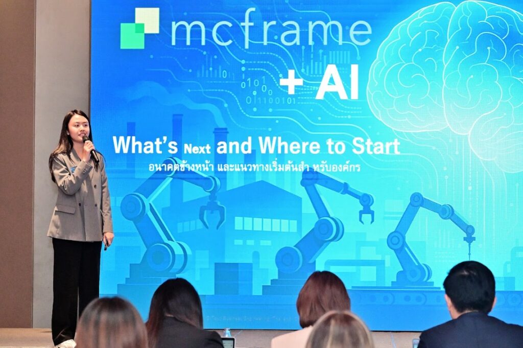 ศักยภาพของ mcframe นั้นได้ถูกอธิบายขยายความเพิ่มเติม ผ่านเวทีบรรยายหัวข้อ mcframe + AI: What’s Next and Where to Start (mcframe + AI: อนาคตข้างหน้า และแนวทางเริ่มต้นสำหรับองค์กร) โดยคุณชลธิชา เสริมทรัพย์ ERP Consult Leader Toyo Business Engineering (Thailand) Co., Ltd.