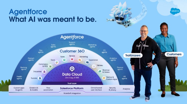 นอกจากนี้ Agentforce ยังรวบรวมโซลูชันสำหรับการทำงานในหลากหลายแผนก ไม่ว่าจะเป็นด้านการขาย การบริการลูกค้า การตลาด การผลิต ฝ่ายบุคคล รวมถึงด้าน Analytics ทำให้ AI สามารถสนับสนุนการทำงานขององค์กรได้อย่างครอบคลุมทุกมิติ จึงทำให้การรักษาความปลอดภัยของข้อมูลกลายเป็นหัวใจสำคัญ